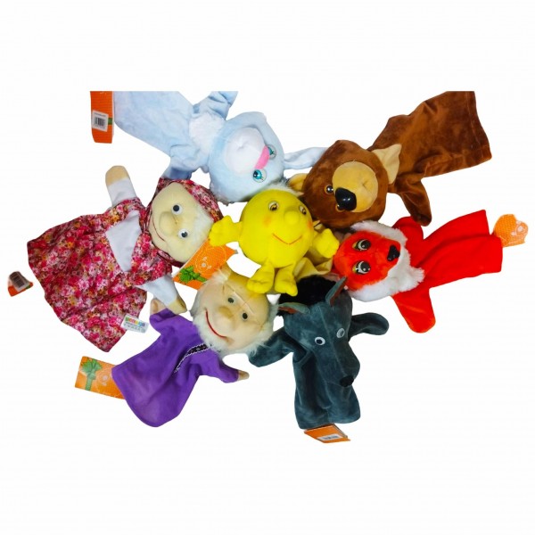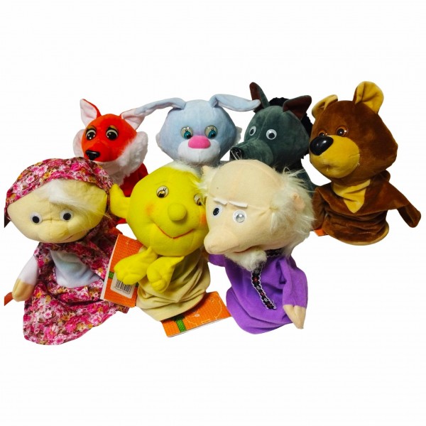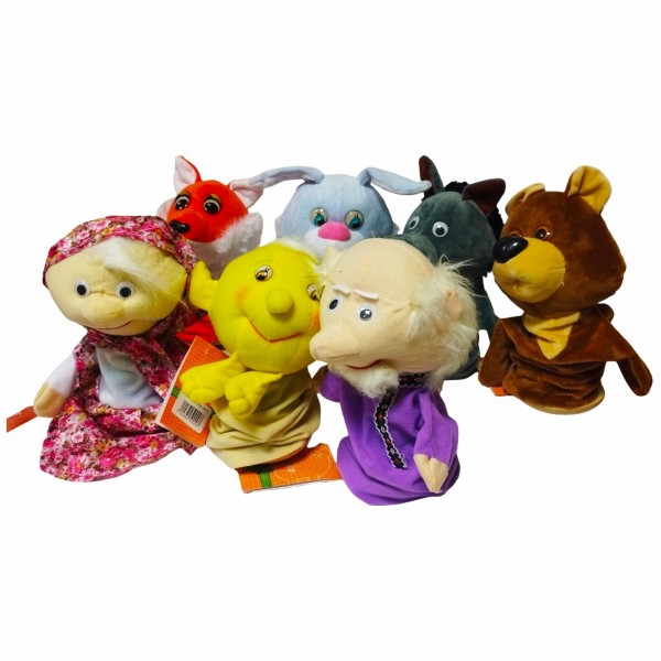 Легко і зручно одягаються ці іграшки як на руку дитини, так і на руку дорослої людини. Персонажі чудово розфарбовані, вони яскраві і виразні. Розглянемо цей ігровий набір. Сім веселих персонажів, кожен з яких лялька-рукавичка. Ці герої стануть для дитини улюбленими іграшками.