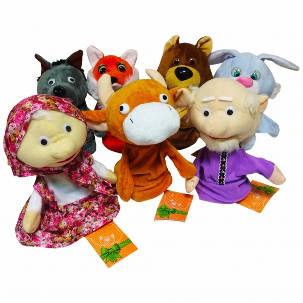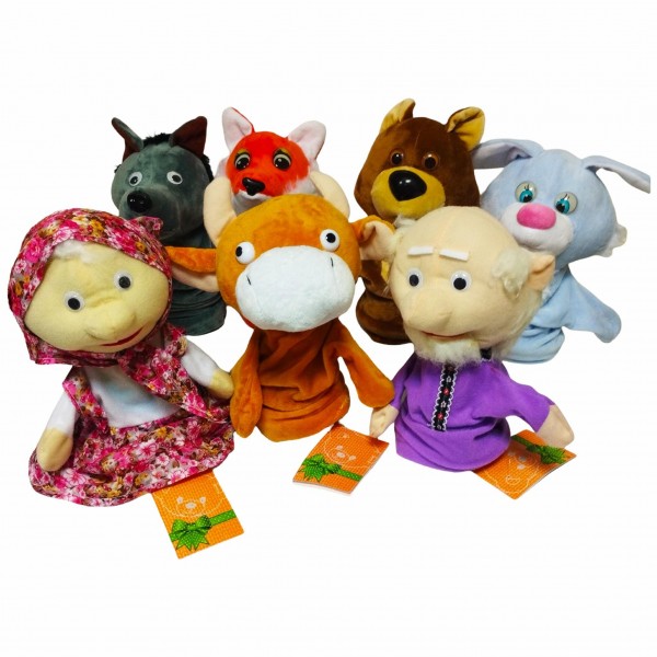 Розглянемо цей ігровий набір. Сім веселих персонажів, кожен з яких лялька-рукавичка. Легко і зручно одягаються ці іграшки як на руку дитини, так і на руку дорослої людини. Персонажі чудово розфарбовані, вони яскраві і виразні. Ці герої стануть для дитини улюбленими іграшками.