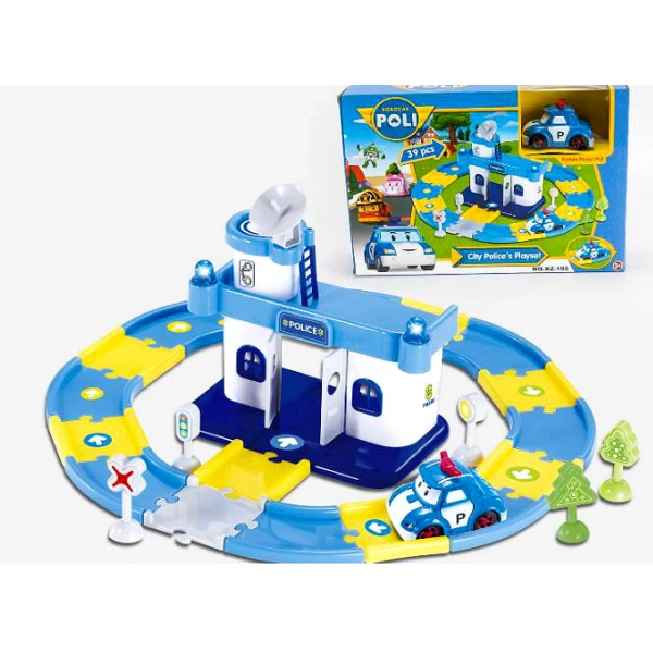 Поліцейська ділянка Robocar Poli виготовлена з якісного та безпечного пластику, має яскраві кольори та правильні геометричні форми. Ваша дитина із задоволенням розглядатиме автомобільну дорогу, з'єднуватиме різні деталі, розставлятиме знаки дорожнього руху та іграшкові дерева.