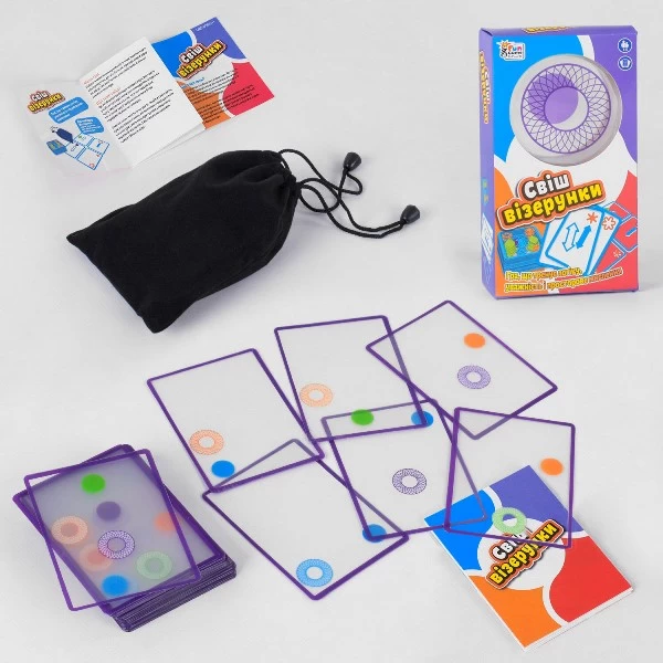 Набір являє 42 прозорі карти, кожна з яких містить всередині малюнок кільця і м'яча.