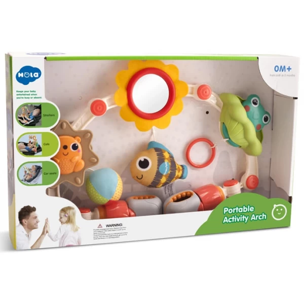 Яскрава дуга від виробника "Hola" - перша розвиваюча іграшка для малюків від народження! Легка та дуже яскрава ігрова панель може фіксуватися на ліжечко, коляску або дитячий стільчик за допомогою надійних тримачів.
