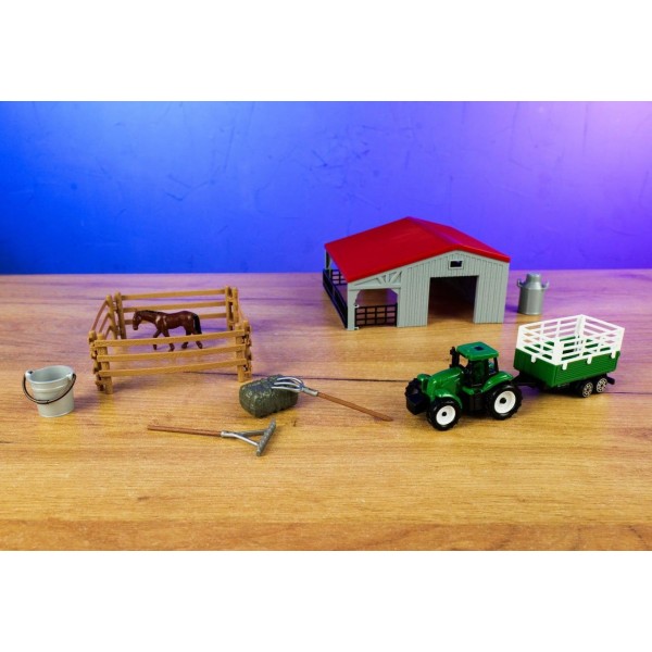 Цей ігровий фермерський набір перенесе дитину у світ турботи про тварин і сільського життя! Малюк зможе самостійно облаштувати хлів, доглядати за конем та перевозити сіно трактором із причепом. Кожна деталь продумана для цікавих сюжетних ігор, що допомагають розвивати уяву, координацію й любов до природи. Така ферма подарує години захопливої гри та стане чудовим доповненням до колекції техніки й фігурок.