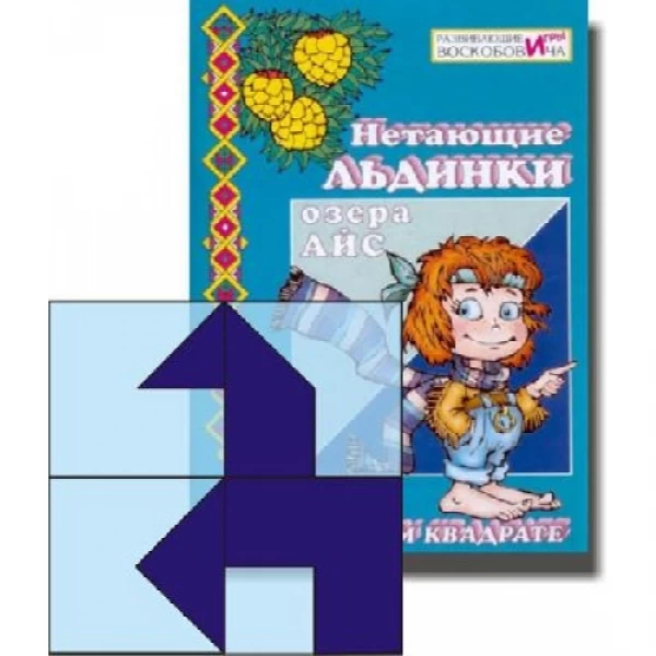 Про те, що трапилося з Вороном Метром і Чарівними крижинками, що не тануть, далі дитина дізнається з казки «Нетаючі крижинки Озера Айс, або казка про прозорий квадрат». Це продовження казок «Малюк Гео, ворон Метр і я – дядько Слава» та «Таємниця Ворона Метра або казка про дивовижні пригоди-перетворення Квадрату». Для тих, хто не читав ці казки на початку книги, дано їх короткий виклад. Взявши у Ворона Метра нетаючі крижинки Озера Айс, Малюк Гео йде шукати вихід із Фіолетового лісу. У подорожі його супроводжує Невидимка. Всюсь – шкідливість і каверзник. Він усіляко намагається перешкодити Малюкові Гео, але за допомогою чарівних крижинок та Вашого малюка все закінчується благополучно. Під час сюжету дитині потрібно складати різні фігурки зі своїх прозорих квадратиків.