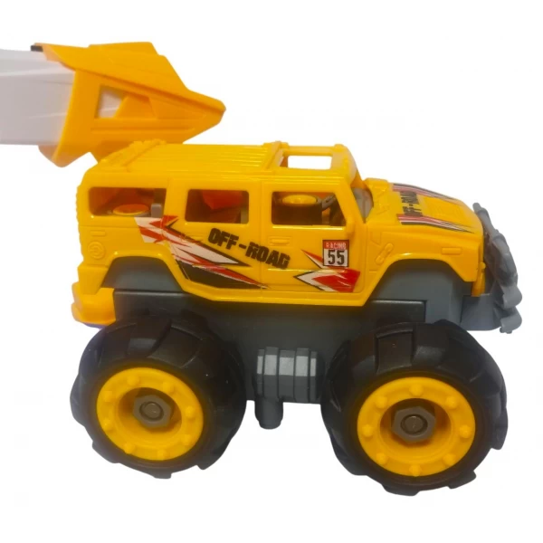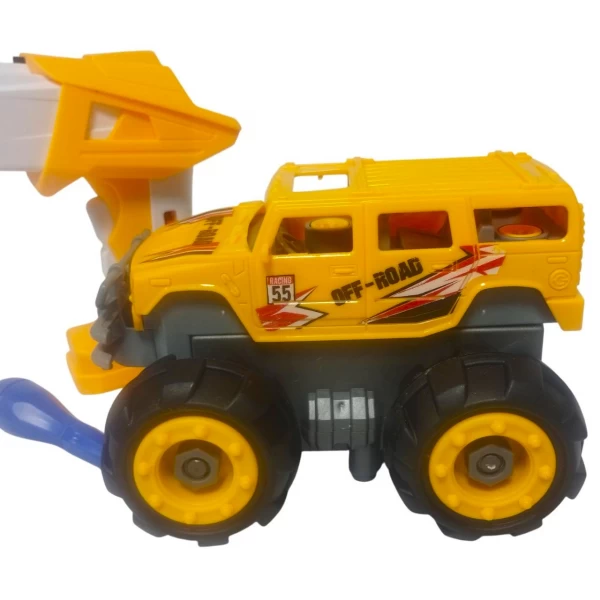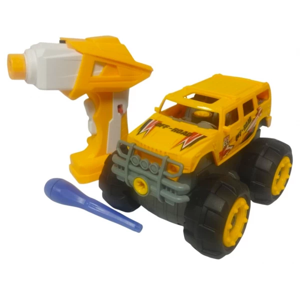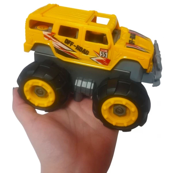 Такий потужний джип здивує вас своєю конфігурацією, адже це справжній конструктор! Таку машинку можна з легкістю розібрати за допомогою викрутки чи електричного шурупокрута, ти можеш змінити корпус чи додати власні деталі з цієї ж серії. Але що найцікавіше, так це те, що джипом можна керувати за допомогою пульта, просто розбери шурупокрут та встав білу частину на дно іграшки, і тоді вона з легкістю буде їздити по кімнаті за твоїми наказами. З цим джипом можна потренувати моторику ручок, розвинути фантазію та логічне мислення.