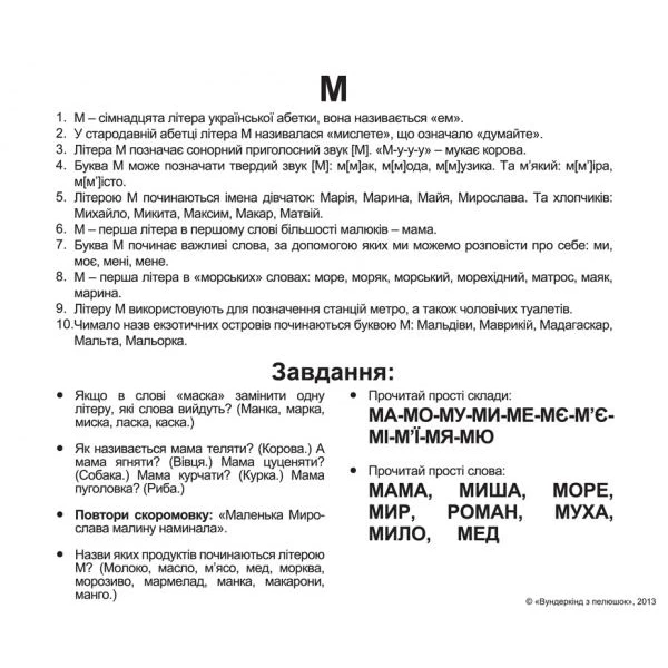 Після того як малюк засвоїть назви літер, ви можете перейти до вивчення базових фактів, написаних на звороті картки. Спершу прочитайте один факт із однієї картки, потім прочитайте один факт із іншої картки і т. д. Коли факти закінчаться, з картками можна гратися. Для цього з кожної картки виберіть одне завдання та попросіть дитину виконати його. Якщо завдання здаватиметься вам надто складним – пропустіть його чи допоможіть дитині.