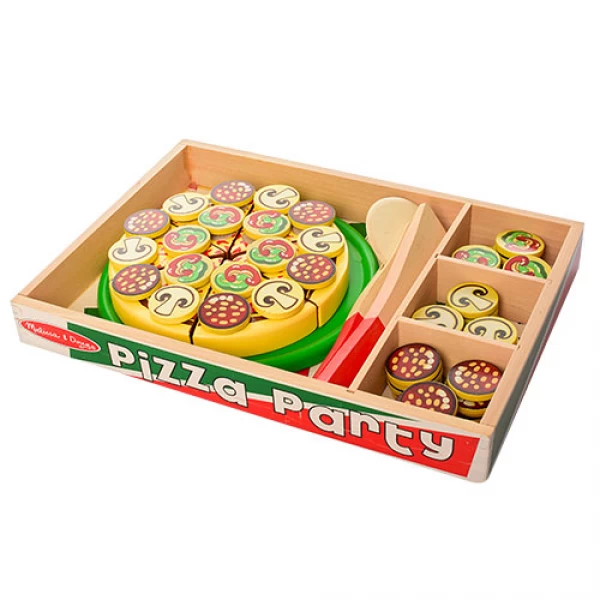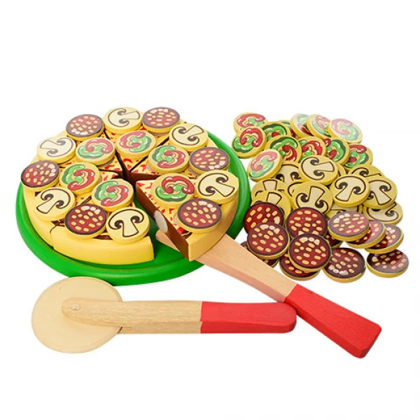 Игровой набор, позволяющим маленьким непоседам представить себя в роли владельцев пиццерии. В комплект входит круглое блюдо, специальный нож для пиццы, пицца-основа и несколько различных ингредиентов-наполнителей. Ребенок сможет украсить свою пиццу по вкусу: здесь есть игрушечные кусочки оливок, ветчины, салями, томатов, перца, лука и грибов. Сделав свою, уникальную, пиццу ребенок сможет поделить её среди друзей или игрушек на шесть частей. Все элементы изготовлены из безопасного и экологически чистого материала – дерева, что дает гарантию безвредности игрушки для детского здоровья.