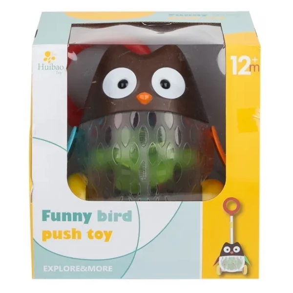 Сова має кумедний зовнішній вигляд, при русі світиться і махає крилами, це обов'язково сподобається Вашому малюку і повеселить його, спонукаючи грати, а отже і ходити далі. Яскраві, барвисті кольори, м'який ніжний звук привернуть увагу дитини, знявши паличку з каталки їй можна буде грати як просто іграшкою. Зовні іграшка позитивна, різнобарвна і яскрава, можна освоювати по ній з малюком кольору, звукові ефекти в процесі гри піднімуть дитині настрій, сприятимуть розвитку дрібної моторики, координації руху, сприйняттю кольору. Кольори каталки дуже довго залишаються яскравими та не вигоряють на сонці.