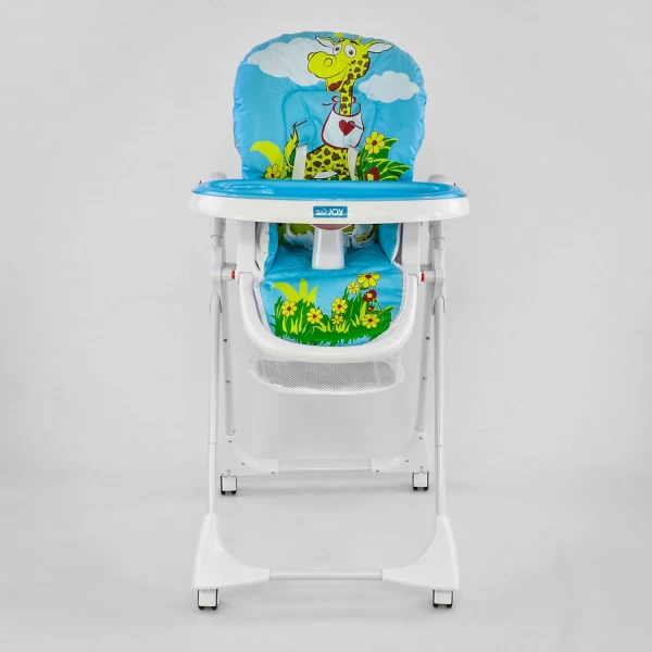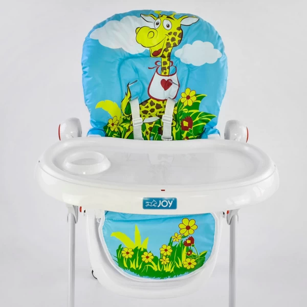 Дитячий стільчик для годування JOY Жираф, колір блакитний, м'який PVC (К-61735) - підходить для дітей від 6 до 36 місяців. Ви можете не переживати за безпеку дитини, тому що його 5-точкові ремені безпеки надійно фіксуватимуть навіть найбільшого непосиду. Для зручності годівлі в стільниці передбачена ніша для склянки, а також піднос.