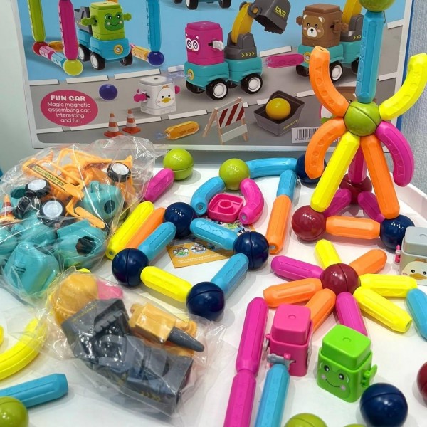 Цей набір із магнітними деталями стане чудовим способом для дитини розвивати фантазію та творчість. Малюк зможе будувати яскраві конструкції, створювати машинки з кумедними мордочками тваринок і вигадувати безліч сюжетів для гри. Конструктор легко з’єднується завдяки магнітам, а різноманітні елементи дозволяють щоразу отримувати новий результат.