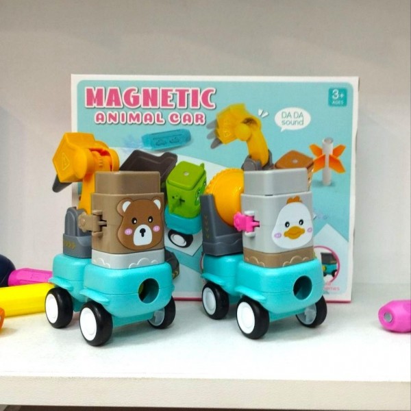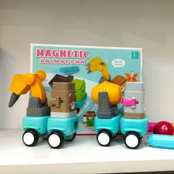 Дитяча іграшка магічний набір 113 деталей із рухомими елементами, тріскачкою Магнітні машинки