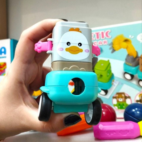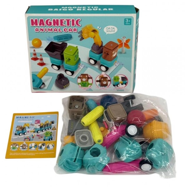 Магнітний конструктор для найменших з машинками та рухомими деталями – це яскрава та безпечна розвиваюча іграшка, яка ідеально підійде для першого знайомства дитини з конструкторами. Завдяки великим магнітним деталям, малюк легко створюватиме машинки з колесами, кумедними мордочками тваринок та різні прості конструкції. Конструктор допомагає розвивати дрібну моторику, логіку, координацію рухів та творче мислення. Набір оснащений тріскачкою і рухомими елементами, що робить гру ще цікавішою та різноманітною.