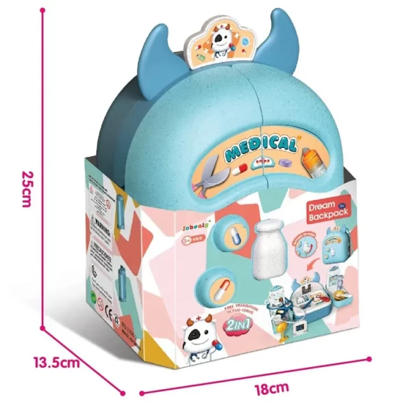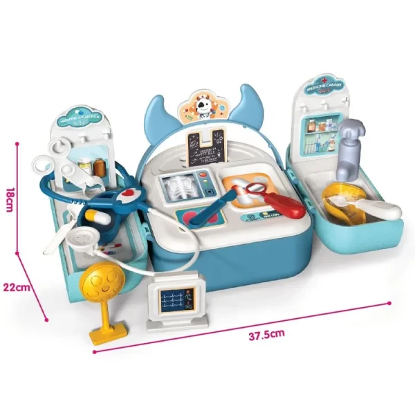 - Практичність: набір можна носити як рюкзак завдяки текстильному ремінцю. Ваші маленькі лікарі завжди готові до екстрених викликів!