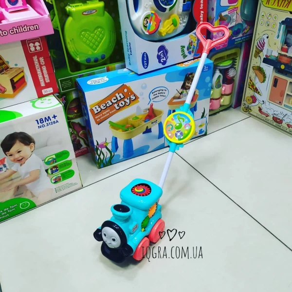 Каталка для дітей від 9 місяців у вигляді паровозика. Щоб перші кроки малюка стали більш впевненими, а його самостійні прогулянки ще більш тривалими допоможе каталка з ручкою.