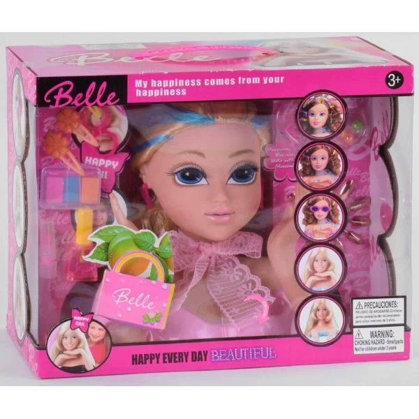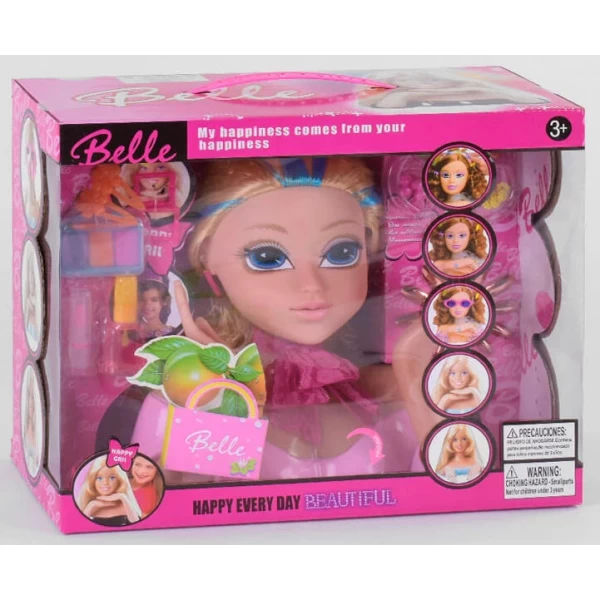 Лялька-голова манекен для зачісок та макіяжу, світловий ефект, з аксесуарами (YL 888 C)