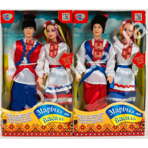 Ляльки виготовлені з якісних матеріалів, костюми зшиті акуратно. У Марічки на голові віночок, а у Василя – шапка. Музичний ефект – пісня українською мовою, пожвавлює та додає оригінальності цим лялькам.