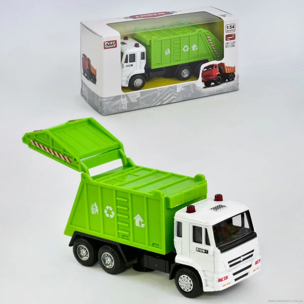 Реалістична модель сміттєвозу КамАЗ із популярної серії іграшок "Автопарк" торгової марки Play Smart відмінно деталізована в масштабі 1:54.