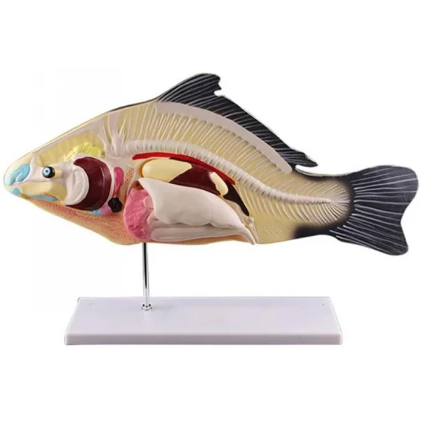 Демонструє зовнішню і внутрішню будову риби. Виготовлена з пластику, пофарбована в яскраві природні кольори і встановлена на підставку.