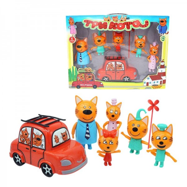 Пориньте у світ захопливих пригод разом з улюбленими героями! Набір включає п'ять фігурок відомих мультперсонажів. Іграшки мають деталізований дизайн, рухомі деталі і ніби оживають в руках малечі. Весела сімейка котів має машинку та запрошує до цікавої та радісної гри.