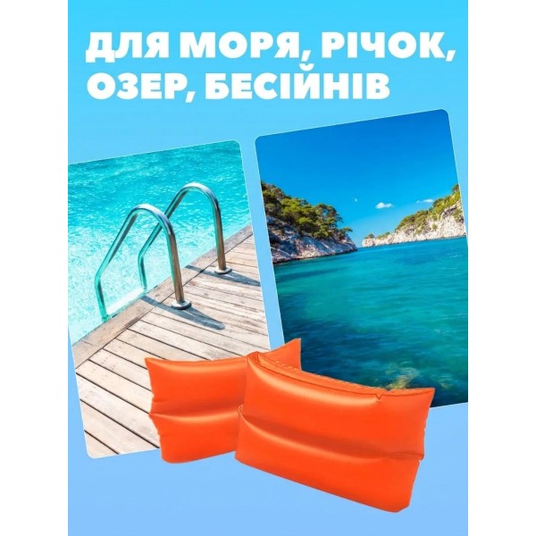 - Якість і надійність: Нарукавники виготовлені з високоякісного ПВХ-пластику, що забезпечує тривалу експлуатацію та стійкість до активних ігор у воді.