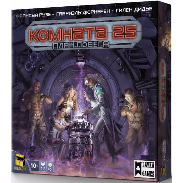 Сбежать из Комнаты 25Комната 25. План побега (Room 25: Escape Room) – второе дополнение к базовой игре Комната 25 (Room 25). Здесь в игру вступают новые герои – VIP-персонажи, которых понадобится охранять на протяжении партии. Кроме того ловушки в комнатах приобретают интеллектуальный характер – участники будут искать подсказки и решать головоломки, словно проходят квест в реальной жизни, такая себе игра в игре.
