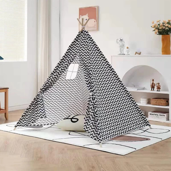 Іграшковий намет Вігвам Зігзаг це чудовий варіант, щоб створити свій власний куточок, у якому можна відчути себе у повній безпеці та грати у різні цікаві ігри.