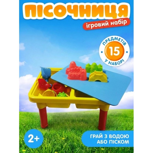 - Багатофункціональна стільниця: Наявність кришки перетворює пісочницю на повноцінний столик для творчості, малювання або складання конструктора.